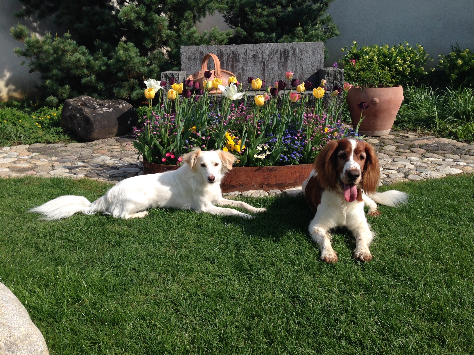 Meine zwei persönlichen Osterhasen und ich wünschen Ihnen schöne Ostern. Tomi geht es sehr gut und er ist ein richtiger Charmeur und ein Frechdachs! Aber sehr geschickt: der hüpft, ohne was umzustossen auf die Küchenkombination und leert die Pfannen… Absolut lautlos! Ich nenn ihn immer: kleine Ballerina