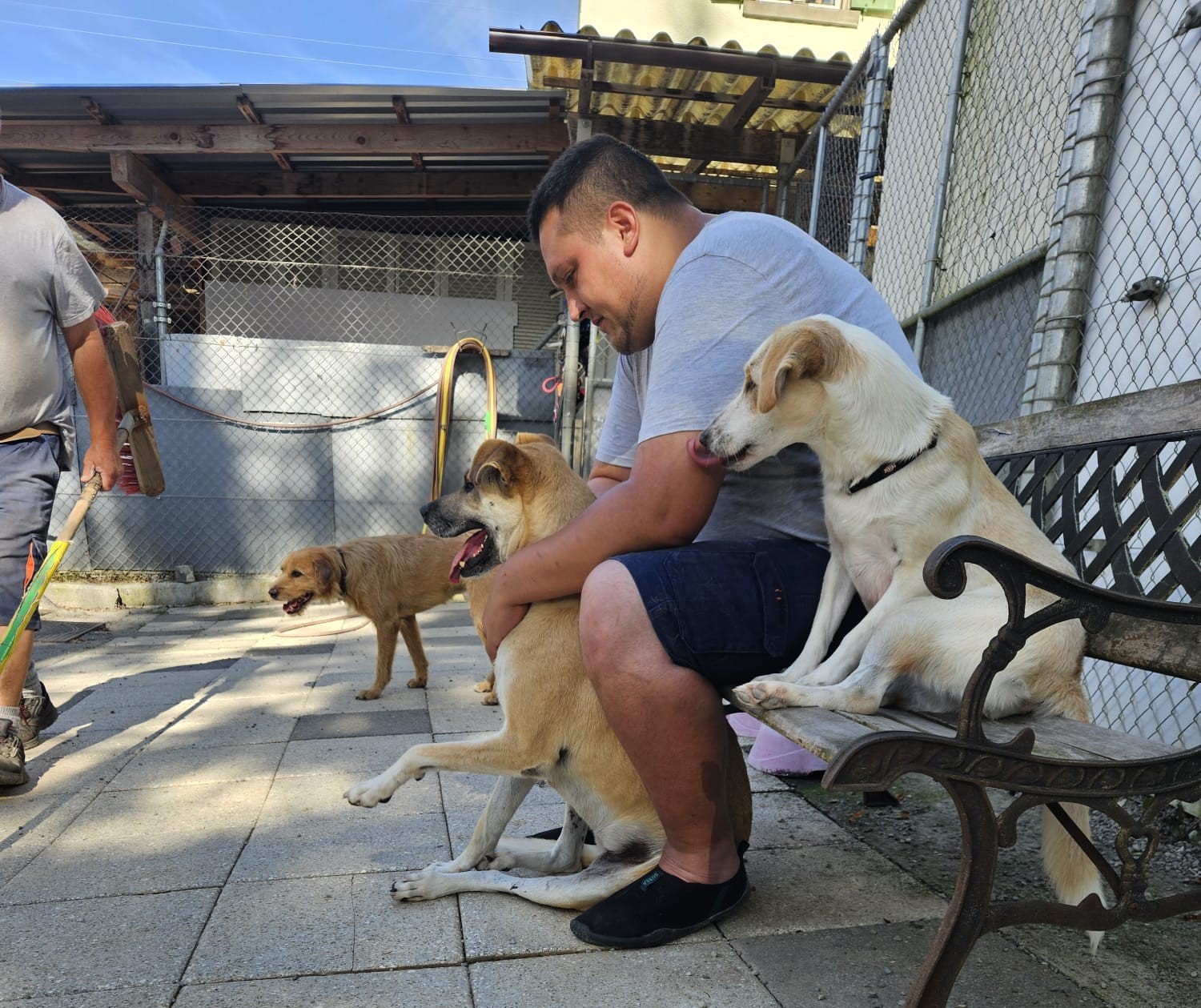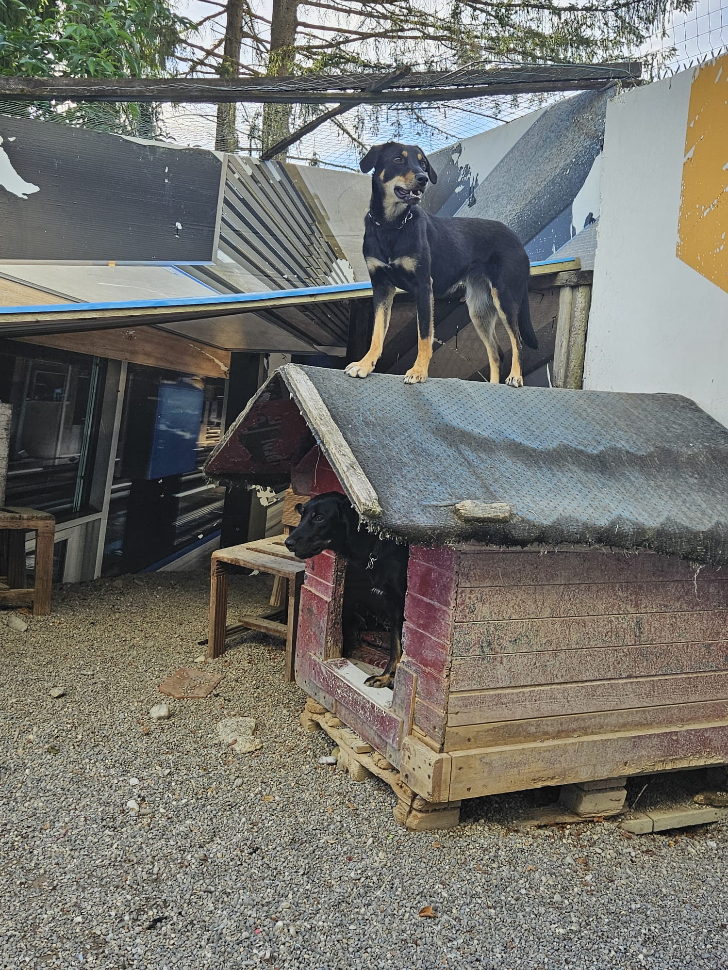 Trotz der enormen Hitze gehen die Arbeiten im kleineren Shems Tierheim vorwärts. Die einen Abteile sind fast fertig, es fehlen noch die Schutzdächer. Hier wird die Unterkonstruktion verbessert, was rund EUR 1200 kosten wird, damit die Dächer besser der Hitze und wenn schon mal sintflutartigen Regenfällen standhalten. Bald werden die noch brauchbaren Dächer vom Clebs Tierheim noch geholt und dann endlich – Michèle hofft auf nächste Woche – werden die restlichen Hunde überführt und dann kann das Clebs und die vielen Unannehmlichkeiten verlassen werden.