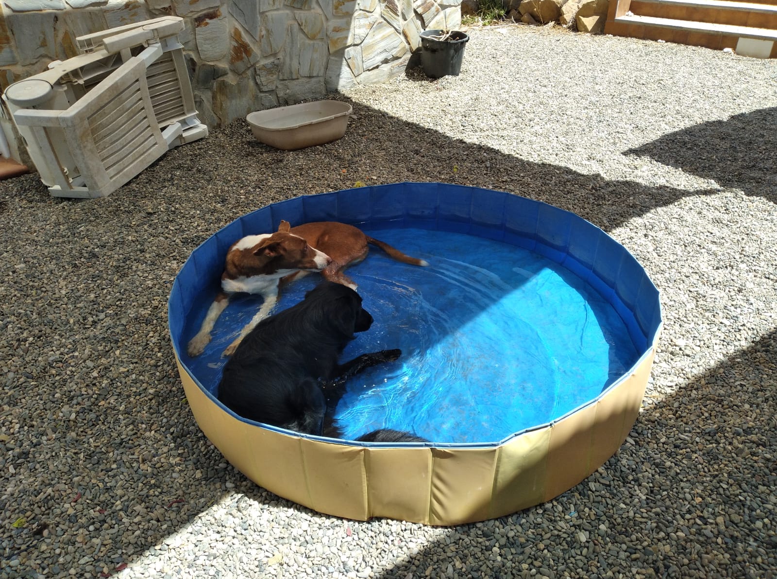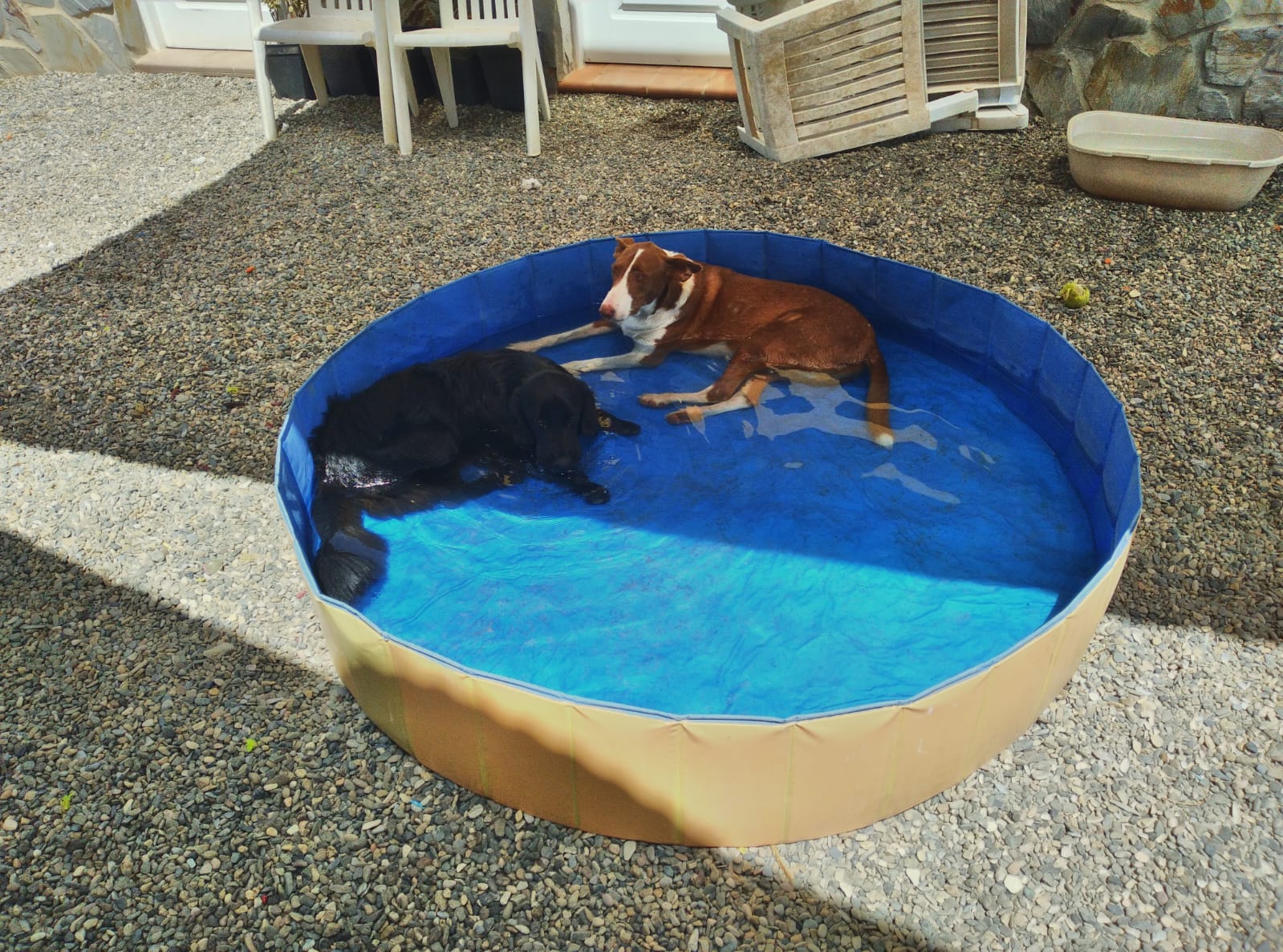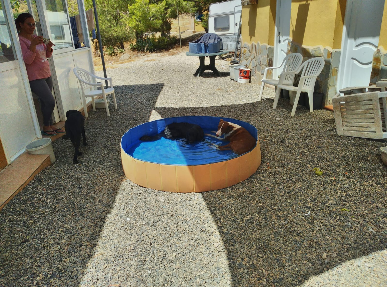 Mit unserem letzten Paket ist ein Swimmingpool nach Malaga gereist. Da Eva etwas Hilfe gefunden hat hat sie etwas Zeit, um ihn endlich aufzustellen. Die Tiere geniessen die Abwechslung sehr. Coco fand es besonders lustig und hat die Plastikteile entfernt 😂 ! Der Swimmingpool hat nicht mal 24h gehalten! Eva wird sich bemühen, die Plastikteile wieder einzusetzen und oder hat vielleicht jemand eine Hartplastikmuschel übrig, die wir zusammen mit anderen Sachspenden nach Malaga schicken könnten?