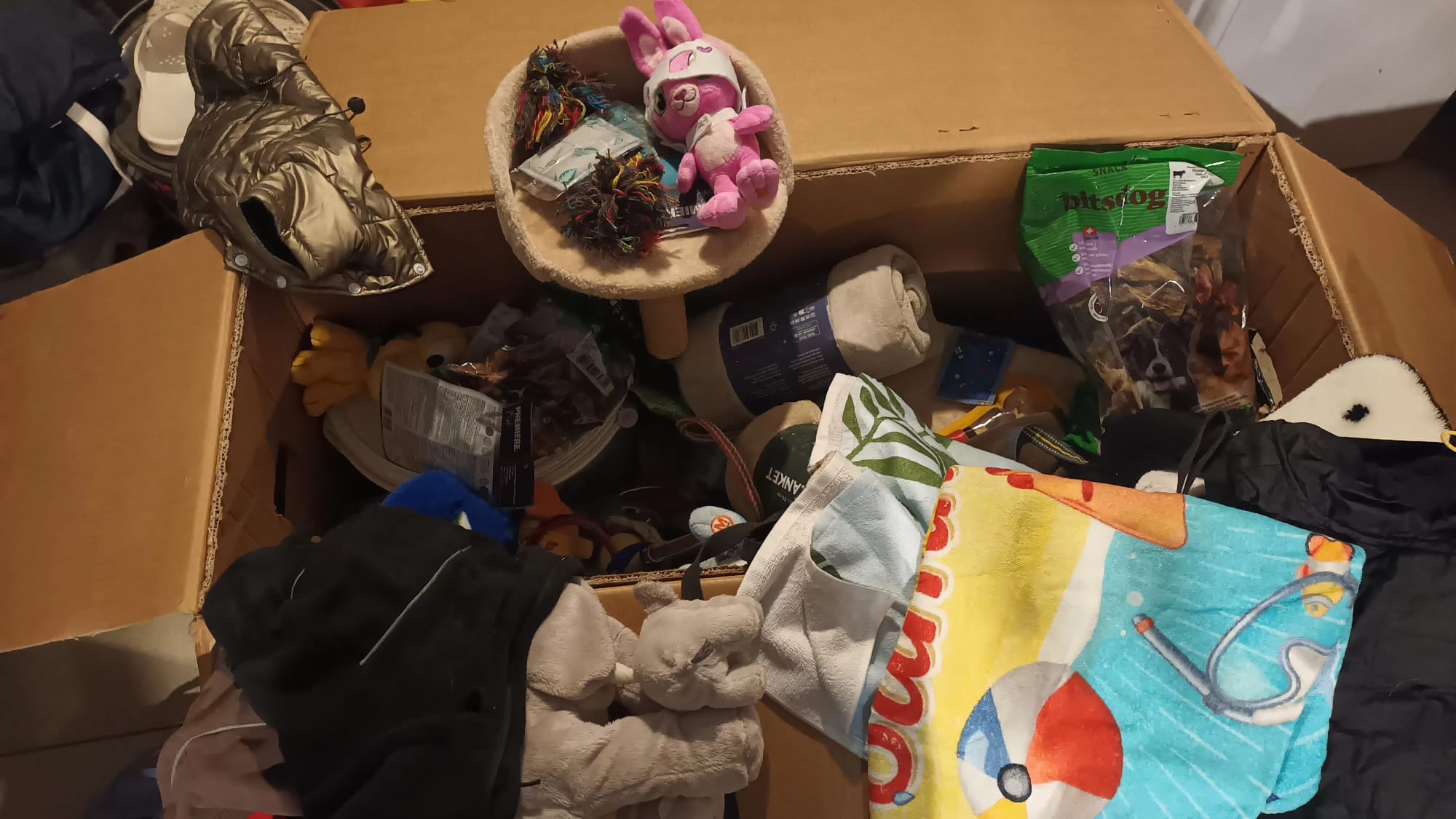 Hier ist das aus Bulgarien! Wir hoffen bald ein weiteres zu 31kg schicken zu können. Diesmal vergessen wir die Nespressokapseln, Raclettekäse und Guddies für Menschen nicht. Hat jemand noch Vitamintablette oder solche fürs Immunsystem, Hautpflegeprodukte für Hunde, Tablette/Puder für alte Gelenke für Hunde oder Herzmedikamente übrig? Ueber die würden sie sich auch freuen. Hat jemand Lust, die Paketgebühr von EUR 49.-/Paket zu übernehmen. Es ist immer eine grosse Freude, wenn ein Paket von uns ankommt!