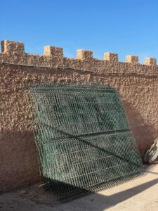 Leider ist die Aussenmauer vom neuen Areal neben Michèle noch nicht genehmigt, doch Michèle konnte stabile Gitter gebraucht kaufen zu EUR 45 anstelle von EUR 79. Wer möchte ein Gitterelement spenden? Zuerst werden Löcher ausgehoben für die Betonpfeiler. Nun wird heftig gebaut!!!