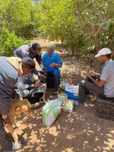 Marokko ist bekanntlich Tollwutland! Michèle bekommt laufend neue Hunde ins Tierheim, die eine Weile draussen gelebt haben. Dementsprechend könnte es theoretisch sein, dass auch mal ein Hund mit Tollwut dabei ist. Sie will vorbeugen, dass die anwesenden Tiere oder Menschen angesteckt werden, indem sie regelmässig sämtliche Tiere gegen Tollwut impfen lässt. Diese Impfungen werden registriert und notiert! Gestern war es wieder soweit….