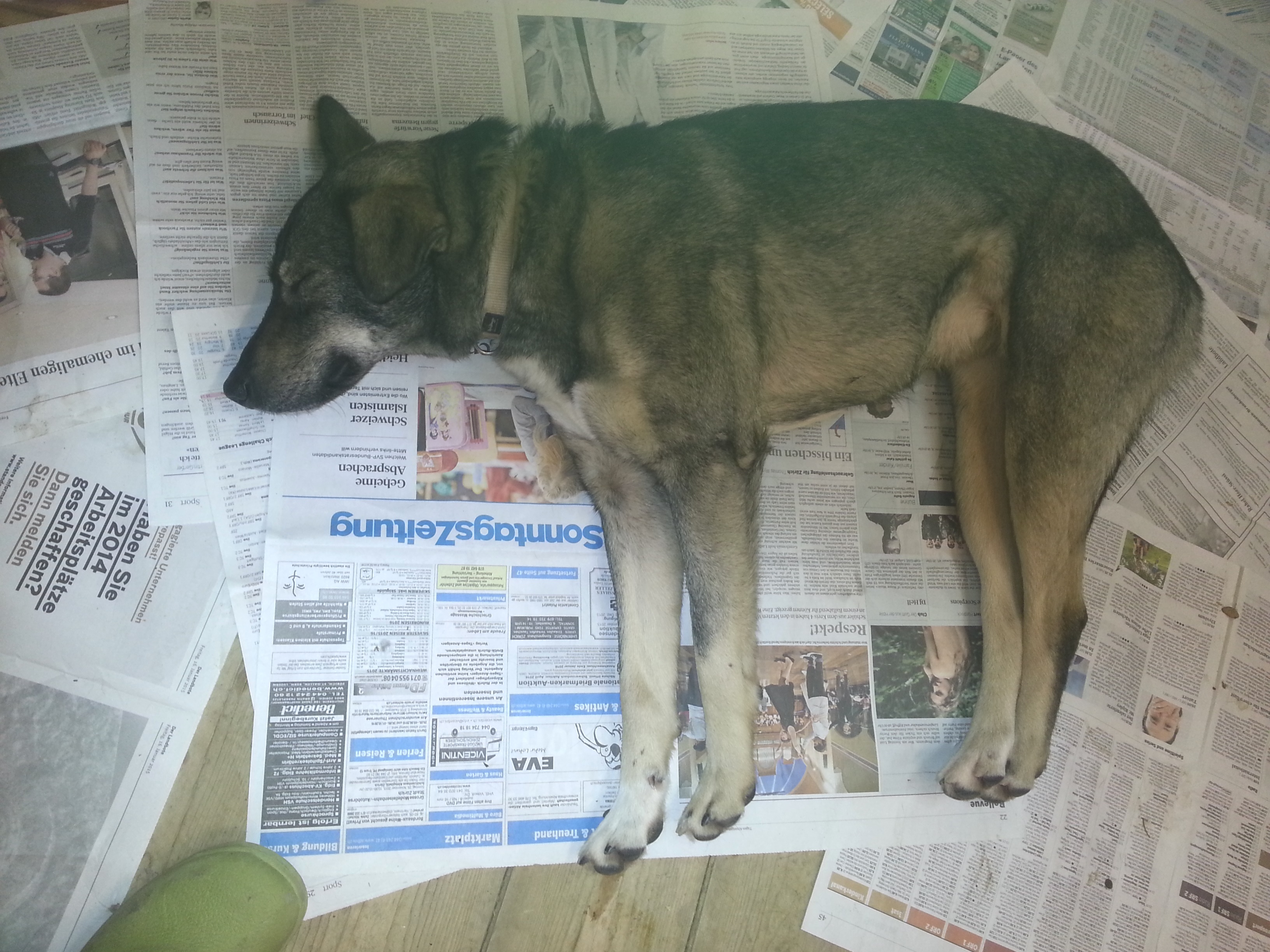 18.12.2015: Wir haben Weihnachten: Heute Nacht konnten wir Noemi mit der von NetAp ausgeliehenen Hundefalle unversehrt einfangen. Sie ist völlig glücklich und zufrieden, wieder Zuhause zu sein! Kaum im Tierheim angekommen hat sie sich hingelegt und schläft wie ein Stein! Wir möchten uns ganz herzlich bei der Bevölkerung bedanken, die uns so zahlreich mit Sichtmeldungen versorgt haben, dank derer wir dann die Futterstelle einrichten konnten. Ein herzliches Dankeschön auch an die Besitzer des Grundstücks, auf dem wir die Futterstelle einrichten durften. Viele Leute haben auch für uns Flyer aufgehängt, wir wären sehr froh, wenn alle, die einen solchen Flyer irgendwo sehen, ihn nun abhängen würden. Ein grosses Daaaannnnkkkeee an alle Beteiligten! Wir sind überwältigt von der Anteilnahme!