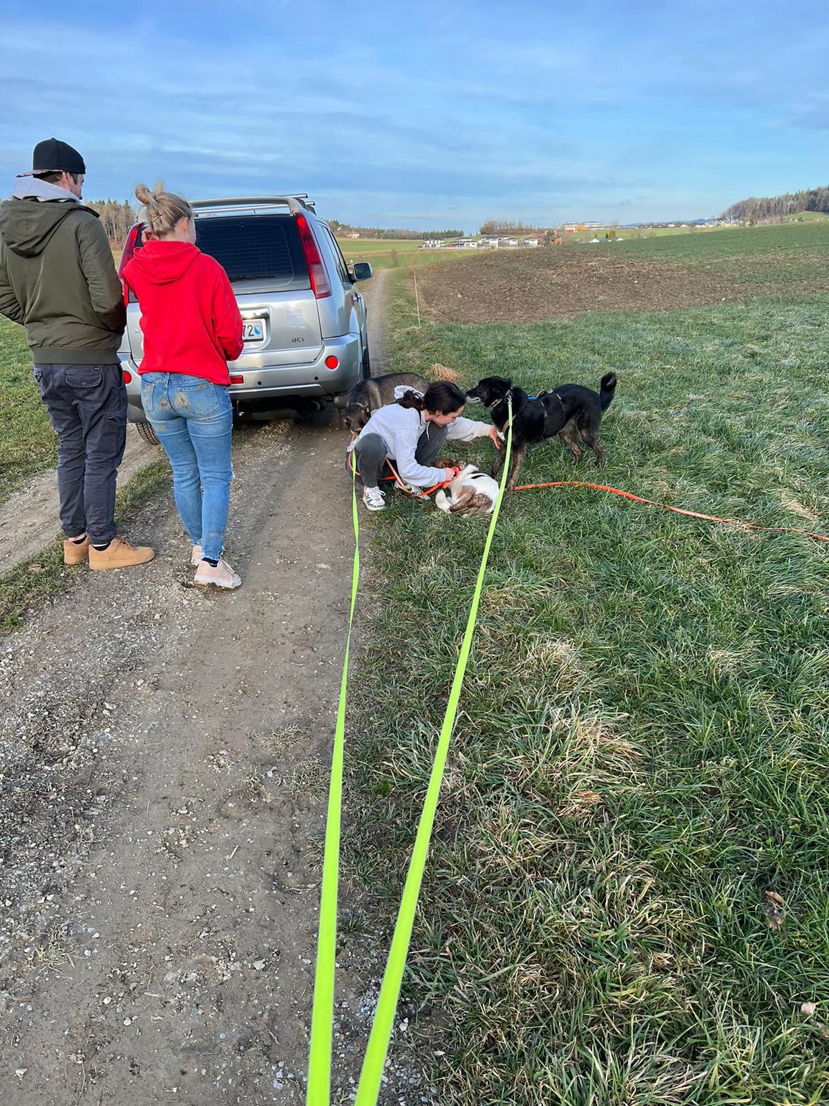 Unsere kleine Dawn ist nach einer Woche in ihrem neuen Zuhause am Donnerstag nachts beim letzten Spaziergang ausgebüxt, da sie nicht mehr richtig gesichert war (kein Gstältli nur am Halsband, aus dem sie rausschlüpfte). Um 5Uhr morgens machten wir die Meldung an stmz. Die ersten Sichtmeldungen erfolgten am Freitag früh von der Polizei anhand von stmz. Darauf wurden viele Flyer verteilt. Am Freitagnachmittag waren zwei Suchtrupps von unserem Tierheim unterwegs, aber leider ohne Erfolg. Am Abend wurden die Pettrailer eingeschaltet, die Futterstellen mit Kameras einrichteten. Am Samstag waren erneut drei Teams von uns vor Ort und endlich gegen den späteren Nachmittag sahen Mia und Tamara das kleine Wuschelhündchen und konnten sie auf sich aufmerksam machen. Jiiiipppiiiiiieee, und dank dem guten Verhältnis von Tamara und Mia zu ihren Schützlingen freute sich Dawn sehr, wieder in ihre Arme zu kriechen. Jetzt kommt Dawn erstmal wieder zu uns, um sich zu beruhigen und dann sehen wir weiter…