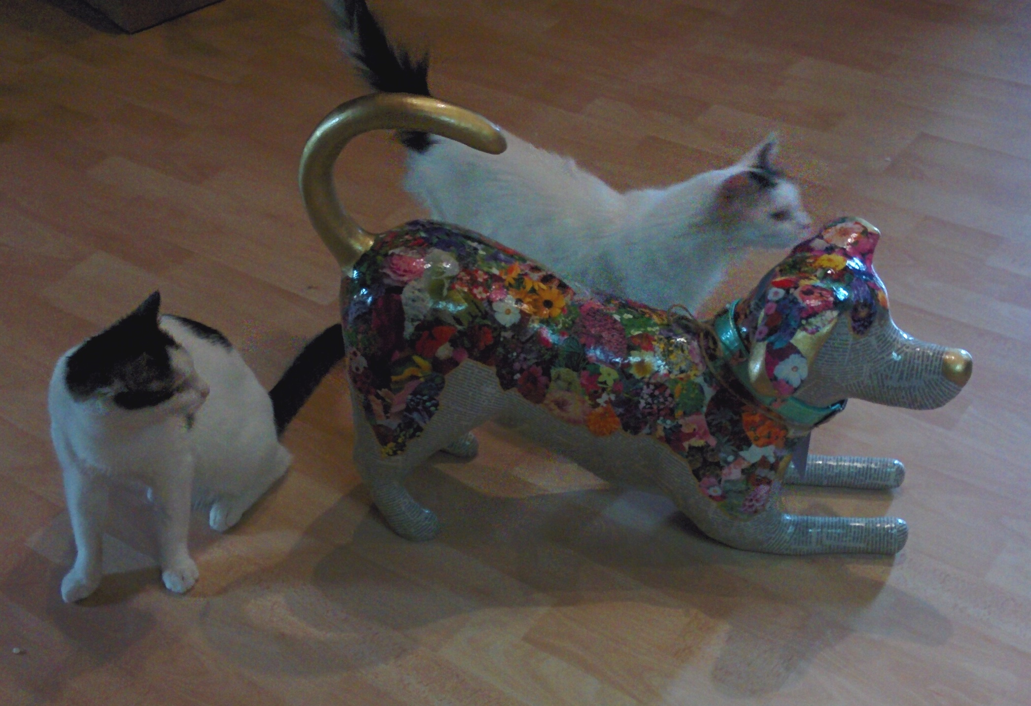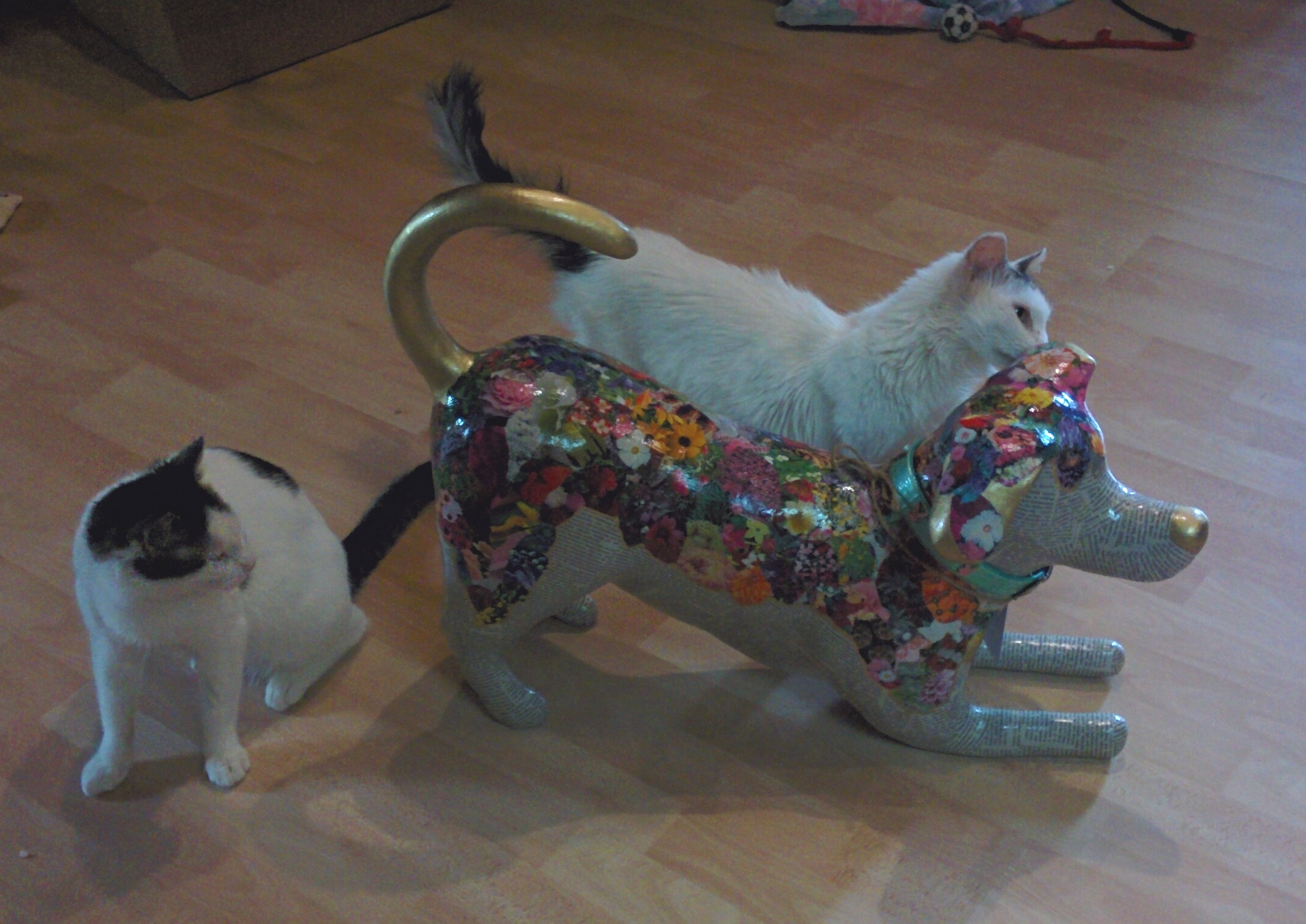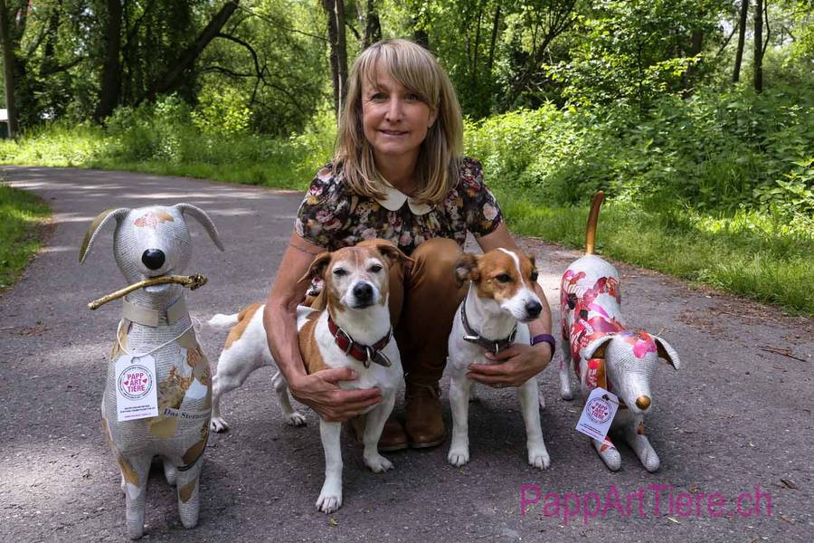 Kathrin Villiger, von PappArtTiere, hat mich mit einem einmaligen Papphund überrascht! Wer hilft mir, einen Namen für ihn zu suchen?