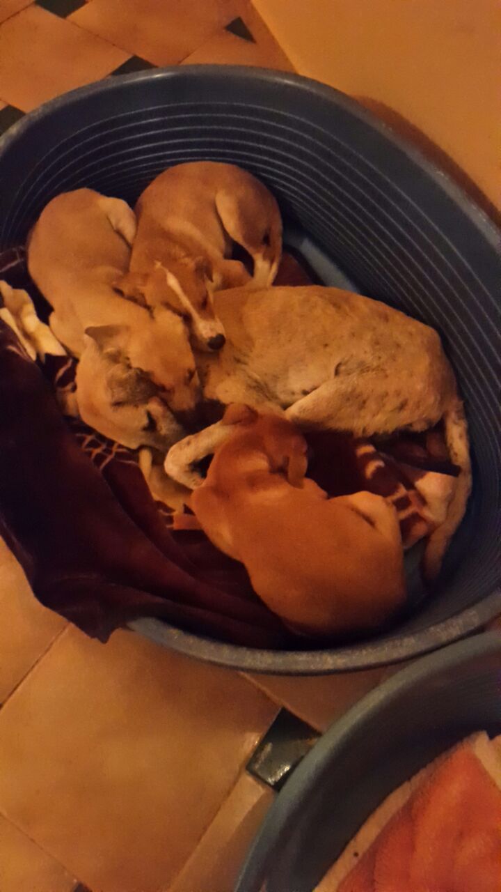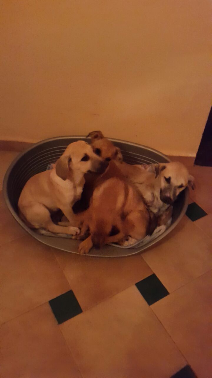 Doch Tango entschied sich anders, er wollte leben! Er konnte zwar nicht stehen, doch er genoss die Streicheleinheiten, das Wasser und das Futter und bald schon setzte er sich auf. Arbil trainierte seine Beine im Swimming-Pool (der eigentlich der Bewässerung der Obstplantage dient). Tango begann Muskeln aufzubauen und bald schon machte er ein paar Schritte, wenn man ihn auf die Beine stellte. Wacklig zwar (drum der Name Tango!) aber energisch ging er Schritt für Schritt vorwärts. Es vergingen viele Wochen bis er auch alleine aufstehen konnte. Inzwischen rennt er schon ganz schnell und am Abend geniesst er die Kuscheleinheiten der kleinen Ladies Missy, Issy, Kissy und Sissy!